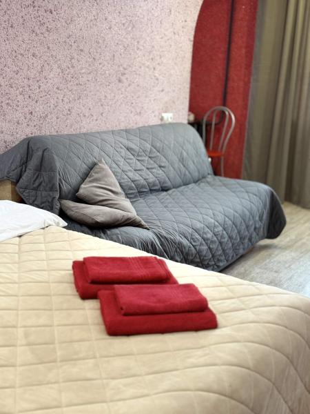 Квартира идеально подходит для размещения до 4 человек. В распоряжении в комнате удобная двуспальная кровать + диван раскладной.
